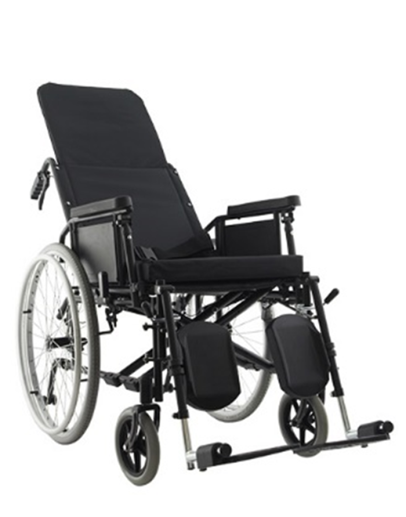 "كرسي متحرك مستلق من الصلب نطاق الاستلقاء: 140 درجة ~ 175 درجة مسند ظهر مع تمديد مسند ذراع قابل للفصل والطي للخلف مسند للقدمين قابل للانفصال بسهولة شريط عرضي مزدوج العجلات الأمامية: إطار من البولي يوريثان 8 "" العجلات الخلفية: 24 بوصة × 1-3 / 8 "إطار من البولي يوريثان"