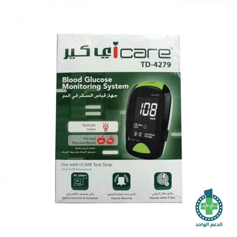 الوصف : جهاز قياس نسبة السكر في الدم اي كير - I CARE جهاز يقيس نسبة السكر في بلازما الدم لذا يعطي أدق قراءات تقترب لدقة المختبر قياس (Hematocrite ) HCT مابين ( 0 – %70 ) ولذا يعطي قياسات عند الاطفال حديثي الولاده ومرضى أمراض الدم المميزات : نتائج دقيقة بنقطه صغيره ضمان مدى الحياة يقيس نسبة السكر في بلازما الدم لذا يعطي أدق قراءات تقترب لدقة المختبر يستخدم تقنية (FAD-GDH ) وهي التقنية الأدق في القياس على الاطلاق الوحيد الذي يتخلص من الشريط مباشره بعد الاستخدام مدى القياس من 10 – 600 mg/di يستخدم نظام التكويد المتطور تحذير عند انتهاء صلاحية شريط الأختبار أوقات تنبيه يمكن ضبطها معاً نتائج دقيقة خلال خمس ثواني يحتاج لنقطة دم صغيره 1.1 ميكرو ليتر التخلص من ابره الوخز مباشره بدون لمس منبه تحذيري عند إرتفاع السكر شاشة كريستال كبيره مضاءه ذاكرة معلومات قبل وبعد الوجبات يعطي متوسط قراءات من 7/ 14/ 28/ 60 / 90 يوم يُمكن توصيلة بالكمبيوتر البرمجة مره واحده فقط في بداية الاستخدام إمكانيته للقياس في وضع صائم وفاطر أو عام له اعلي ذاكره تصل إلى 1000 وحده مع الوقت والتاريخ وحدتا قياس عالميتين للقراءات يقيس نسبة السكر في بلازما الدم يستخدم بطارية عادية كمصدر للتشغيل المواصفات : العلامة التجارية : اي كير نوع : معدات فحص السكر بالدم