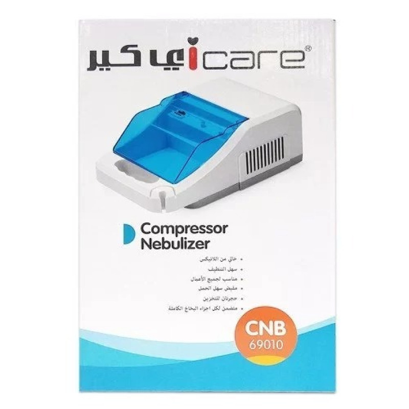 مواصفات جهاز نيبولايزر اي كير: يساعد جهاز نيبولايزر اي كير مرضى الربو والانسداد الرئوي المزمن والتهاب القصبات الهوائية وغيرها. يعتمد جهاز اي كير على تحويل العلاج من حالته السائلة إلى البخارية ليستنشقه المريض إلى الجهاز التنفسي للمريض مباشرة. كفاءة جهاز اي كير العالية تساعد على وصول العلاج إلى الأجزاء الأعمق داخل الجهاز التنفسي. يمكن أن يستخدم جهاز النيبولايزر كل من البالغين والأطفال. تعمل المضخة في اي كير بشكل عملي وسريع مما يقلل مدة جلسة العلاج. تصميم اي كير عصري وبسيط، سهل الاستخدام، قليل الأزرار والملحقات. يعمل جهاز اي كير عند توصيله بالكهرباء بشكل مباشر. ملحقات الجهاز: قناع للبالغين قناع للأطفال منقيات للهواء أنبوب هوائي قطعة للتنفس من الجهاز مباشرة أبعاد الجهاز: 17×14.8×8.6 سم. وزن الجهاز: 1.146 كجم. العلامة التجارية: ICARE.